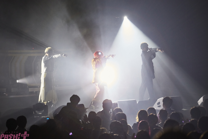 ヴィジュアル系バンドのヴォーカルという役柄の十四の歌う「Violet Masquerade」は、ゴシックな色合いの楽曲を、榊原が芝居がかった歌声で歌い上げるシアトリカルな構成。そしてメッセージと擬音(オノマトペ)が交差したラップが、複雑なビートの上に乗る、SOUL’d OUTのDiggy-MO’が制作を手掛けた唯一無二の楽曲「そうぎゃらんBAM」を乗りこなす葉山と、三者三様のオリジナリティを楽曲とパフォーマンスでも表現し、ソロパートを魅せた。