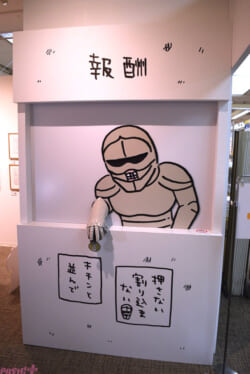 さらに、会場の出口となる“報酬コーナー”には『ちいかわ』に登場する鎧さんの姿が。こちらでは、なんと鎧さんから報酬カード(描き下ろし全6種/ランダム)を受け取ることができます!
