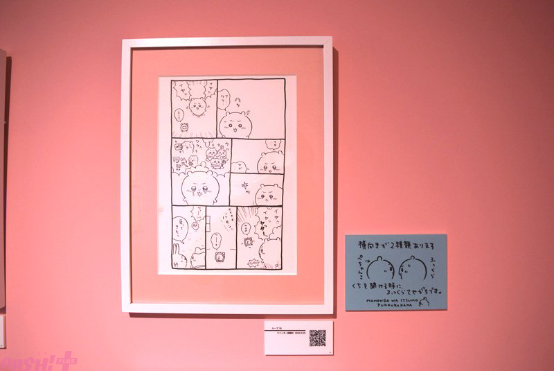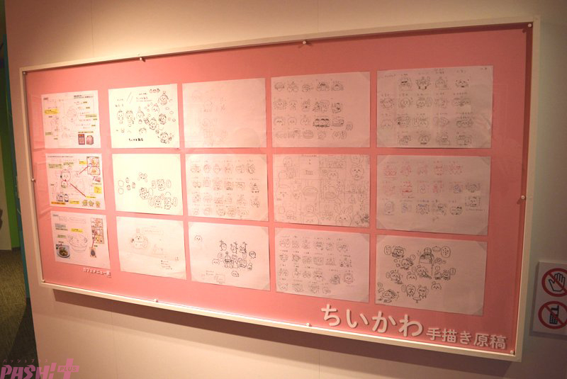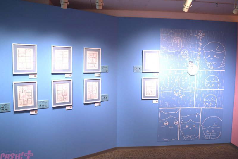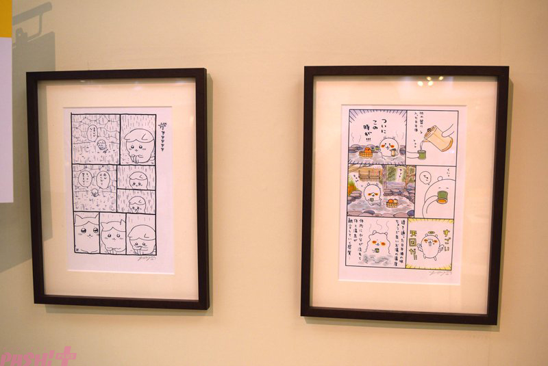 2017年5月に誕生し、今ではTVアニメも放送されている『ちいかわ』。本展ではTwitterに投稿される漫画の原画だけでなく、コラボなどの手書き原稿も展示されています。また、ナガノさんの原画への直筆コメントやキャラクター、キーワード紹介もファン必見です。