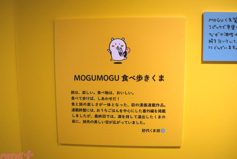 2018年3月にスタートした『MOGUMOGU 食べ歩きくま』の内容を展示。同じものを食べたくなってしまうような食欲をそそるイラストが多数展示。見ていると食べ歩きの旅に出てしまいたくなります!