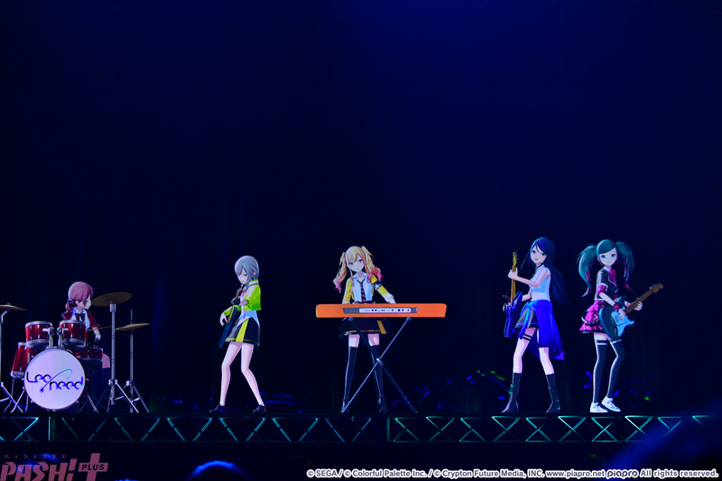 楽曲の感想とこれからの意気込みをファンに伝えるMCではミクも登場。ここでの出番を終えたリンがメンバー4人とミクにハイタッチでバワーをあげると会場からも歓声が漏れます。