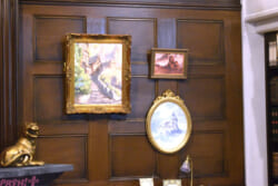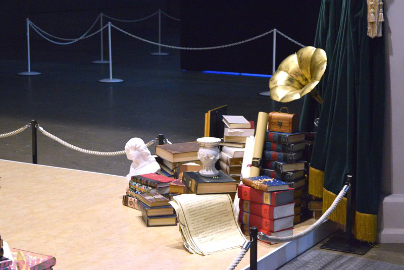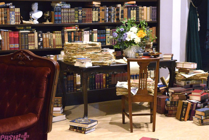 ルナールが絵物語の執筆に使用している部屋を再現した“ルナールの鉄火場”は、エレガントな内装に加えて“鉄火場”の表現にふさわしい膨大な量の資料と、描き上げている最中と思われる原稿が印象的です。