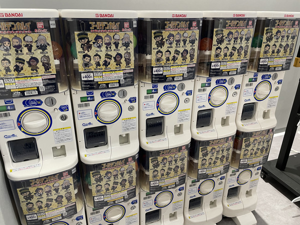 同エリアに限定イラストを使用したガシャポンも設置されています。またクレーンゲームプライズのディスプレイも!