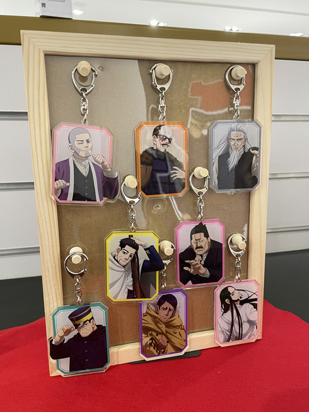 登別温泉名物「滝の湯」で、湯を出すハンドルを回してオリジナルの景品をゲットできるミニゲーム。第七師団の疲れを癒してあげられるなんて嬉しい。壱等は温泉ロッカーキーホルダー(全6種)、弐等は44mm缶バッジ(全15種)、参等はフォト風シート(全10種)。鯉登少尉の父・鯉登平二少将のグッズがあるのに注目です!