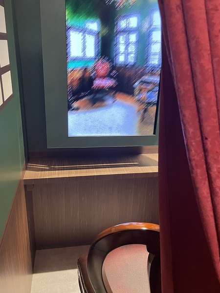 第七師団への入隊志願者と勘違いされたことをきっかけに、鶴見中尉から繰り広げられる難問に応えるマルチエンディングのアトラクションです。入り口でオープニングを見た後、奥の部屋へと進んで席に着きます。
