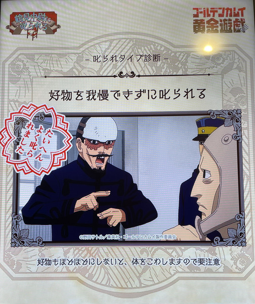 最後には「叱られタイプ診断」の結果が。こちらのみ撮影、SNS投稿がOKとなっています。