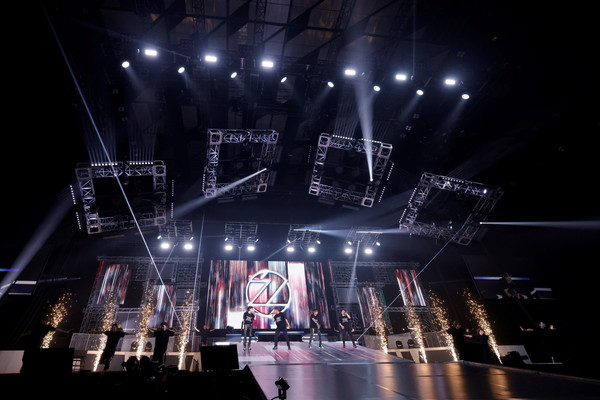 都会の高層ビルが印象的な幕間映像が明けると、「einsatZ」のジャケットビジュアル衣装を着た4人が登場。客席に近いアリーナ中央に移動すると、リフターを使った演出でファンの注目を集めた。ここから雰囲気を一変させたのはメロウなリズムが心地よい「Insomnia」だ。幻想的なレーザーライトが会場中を照らすなか、繊細な歌声をファンに届ける。