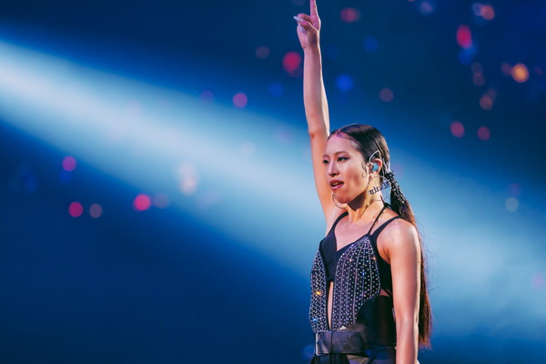 短い暗転を挟み、間髪入れずに登場したのは2人目のゲストあっこゴリラ。「楽しむ準備はいいですか!」という言葉とともに飛び出したのは「ドンキーコング」。サビでは「アリーナ、手挙げな!」と煽り、とにかく盛り上げまくっていく。「TRACK GRRRL」、「GANANIKA」、「POWER SPOT」とテンポよく駆け抜けていったが、曲と曲のつなぎひとつとってもユーモアに溢れており、彼女のエンターテインメント性がたっぷり詰まったステージになっていた。最後は再び大門を呼び入れ、2人のフィーチャリング曲「NO BRA!」へ。ブラジャーを振り回しながら会場中を大いに沸かせていた。