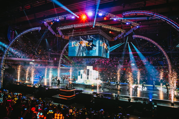 ダンサーたちが「ラップには負けない」と言わんばかりの熱いダンスパフォーマンスを見せ終わると、Fling Posseが黄色い声援を浴びながら再びステージに登場。「とりまGet on the floor」でステージ上を所狭しと駆け回っていく。ここからは怒涛のディビジョン曲パートへ。Bad Ass Templeの「でらすげぇ宴」、Buster Bros!!!の「IKEBUKURO WEST BLOCK PARTY」、どついたれ本舗の「縁 -ENISHI-」、麻天狼の「シンクロ・シティ」、MAD TRIGGER CREWの「Scarface」とノンストップでのパフォーマンスに会場のボルテージは天井知らずに高まっていく。キャストはもちろん、DJ、ダンサー、そして観客の一体感がたまらない。