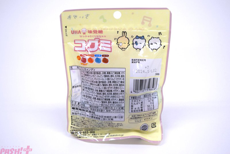 ちいかわ、ハチワレ、うさぎ、モモンガが描かれたかわいいパッケージのコグミです。今回届いたデザインのパッケージは背面にもちいかわたちの姿が! パッケージの隅々まで注目のアイテムです。