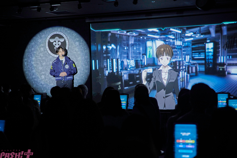 人間の心理状態を数値化し管理する近未来社会を舞台に、正義を問われる警察機構を描くオリジナルTVアニメーション作品『PSYCHO-PASS サイコパス』とコラボした本公演。参加者たちは監視官研修生として、先輩監視官の常守朱(声優:花澤香菜)、宜野座伸元(声優:野島健児)、執行官の狡噛慎也(声優:関智一)らと協力して、爆弾事件の解決に臨みます。