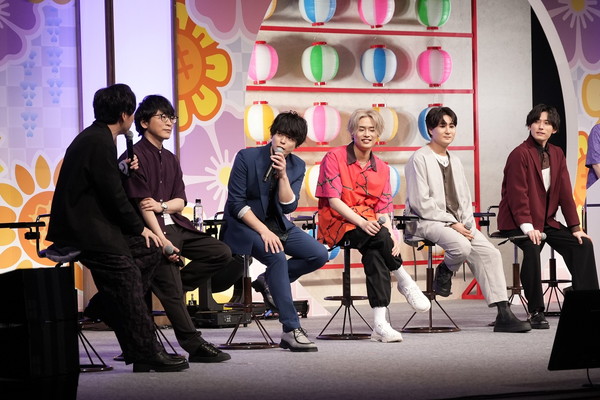 ここからは進行を八代拓と広瀬裕也にバトンタッチし、ミニゲーム「たくさんのお花を集めよう!!満開花まつり」へ。チーム清光(増田、新垣、濱、土岐、阿部、赤羽根)と、チーム安定(市来、鳥海、前野、高梨、伊東、野島)の2チームに分かれた対抗戦で、音色だけでどちらの風鈴が高価かを当てる「夏の音色聞き分け対決」を行いました。結果は新垣が一人だけ正解という活躍ぶりで、見事チーム清光が勝利をつかみました。