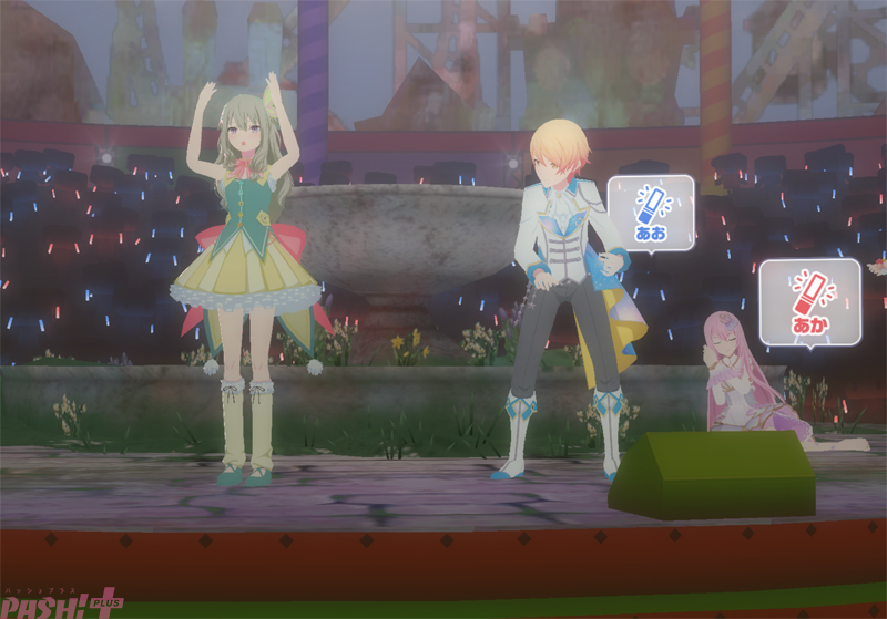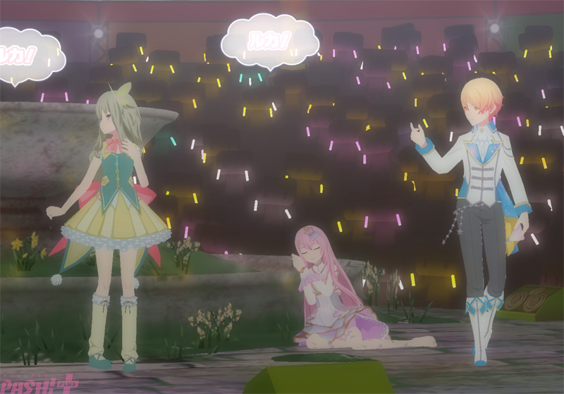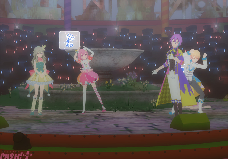 噴水に訪れた一座を待っていた……というよりも居眠りしていたのは新たな噴水の妖精(演:巡音ルカ/以降ルカと表記)。まずは彼女を起こすために、“全力のわんだほい(赤)”と“ささやき声(青)”のどちらで呼びかけるのか、会場のペンライトの色による投票で決定することに。