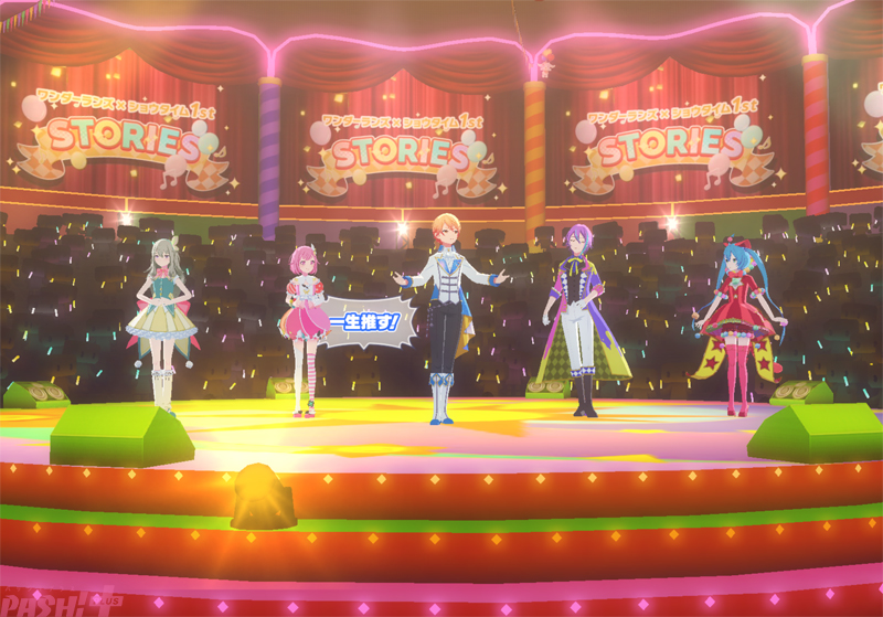 最期には、カーテンコールのごとくワンダショメンバーとミクの5人が登場。観客からの応援に感謝を述べつつライブは終了。ディスプレイにはエンドロールが流れるなど、どこまでもワンダショらしいショーのようなライブとなりました。