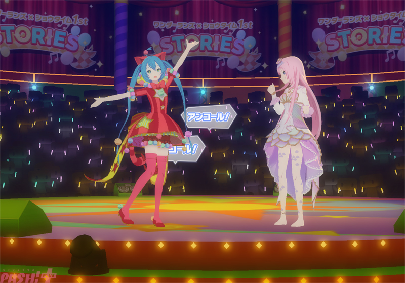 そして、ショーといえばアンコール! ミクとルカが現れてアンコールを告げると、続いてワンダショのメンバーも登場して特別な時間が始まります。