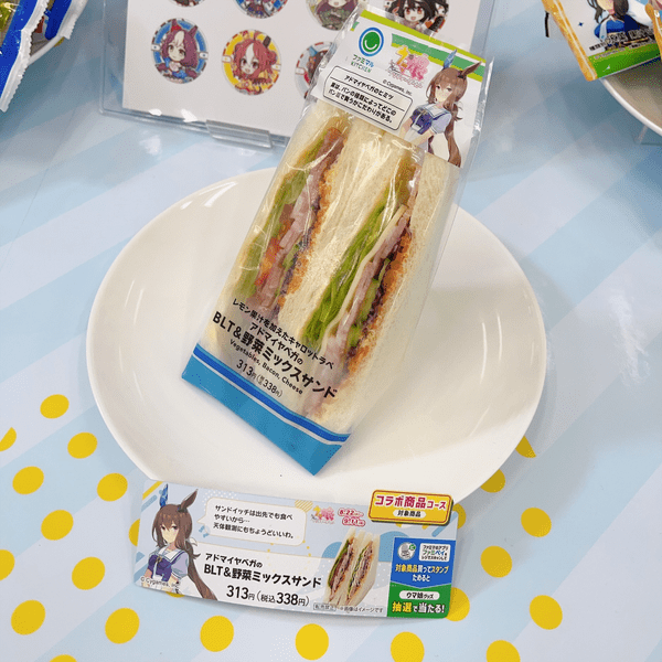 続いて「アドマイヤベガのBLT&野菜ミックスサンド」を試食。この商品はアヤベさんが作中で作るサンドイッチを再現したもの。ベーコン・レタス・トマトにきゅうりを加え、歯ごたえを出すために、人参・紫キャベツが合わされています。春川さんはレモン果汁が加えられたキャロットラペが使われていたり、コラボ感がでていると再現度の高さに注目。真野さんは一口目からシャキシャキの野菜がたくさんで食べごたえ、噛みごたえ抜群!とコメントされていました。