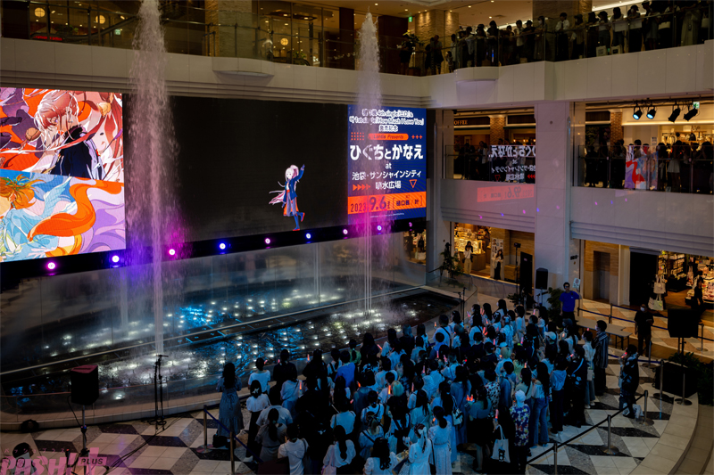 会場の池袋・サンシャインシティ 噴水広場といえば、数々の有名アーティストがイベントを行ってきた“聖地”として知られるスペースだが、おそらくVTuberと生身のアーティストが一緒にイベントを行うのはこれが初ではないだろうか。