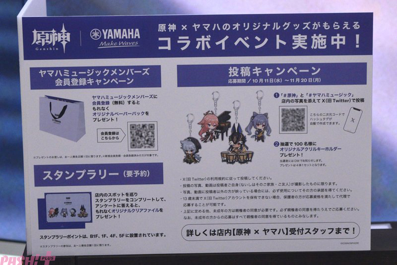 原神×ヤマハ オリジナルアクリルキーホルダー:Xでヤマハ銀座店内の写真とハッシュタグ「#原神」「#ヤマハミュージック」を付けて投稿(抽選100名)