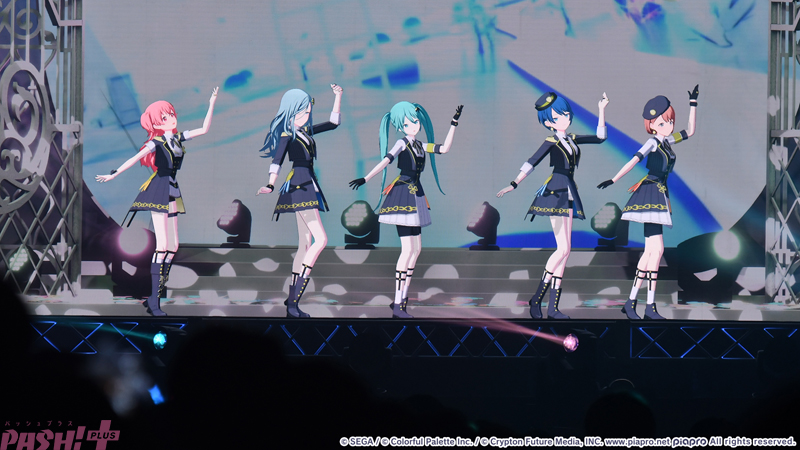 4人に初音ミクを加えて歌唱するのは、こはねが「私たちの原点になる曲」と表現した『Ready Steady』。その思いは観客たちも同じだったようで、会場のテンションも急上昇! 事前に行われていた衣装投票企画で決定した、黒一色の衣装“Spirit of Wish”、“Spirit of Love”、“Spirit of Sound”に身を包んだ姿は貫録すら感じさせます。