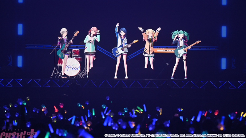 “スペシャルタイム”が終了し、長きにわたるライブもいよいよ終了……というところで、会場からはセカライ初めての声出しアンコールが。そんな声に応えて現れたのはバーチャル・シンガーの6人。