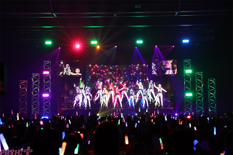 続いて妖の万屋・夜十神封魔は、ラップや英語詞もある「about you」をパフォーマンスする。後輩気質で愛され屋な封魔が、この日はキレのあるダンスと吐息まじりの歌でセクシーに会場を魅了。ハートをなぞる振り付けでの<I’m crazy about you>は破壊力抜群だった。