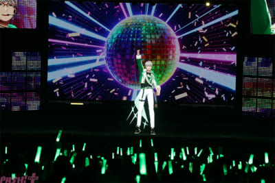 外はすっかり夜になる頃だろうが、豊洲PITには再び夕焼け空が広がる。ロベルのソロ2曲目、「夕暮れは踊る」だ。こちらも手をくるくる回したりぴょんぴょん飛び跳ねたりと、ポップな振り付けが楽しいステージング。<沈む 直前の 眩しさが続け>という歌に、終幕の近づく今この瞬間だけの多幸感と、一抹の寂しさが瞬いた。