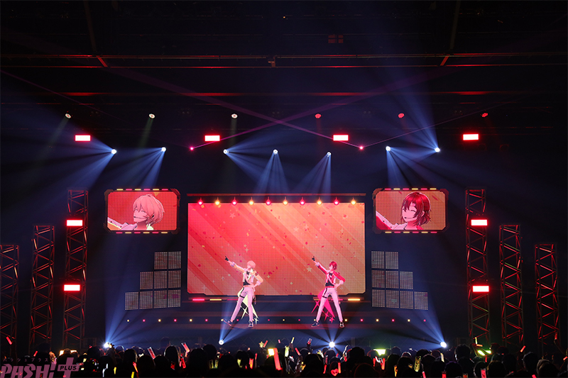 みやび・天真によるユニット・花岸は、期待していた人も多かったであろう「チグハグ⇔フローリィナイト」を披露。一見バラバラのフレーズを2人が歌うことでハーモニーが完成する、不思議な楽曲だ。Cメロでは同じではないポーズを、けれど息ぴったりに決めると、腕をぶつけ合いラスサビへ。歌い終わりには、今度は同じポーズで締めくくった。