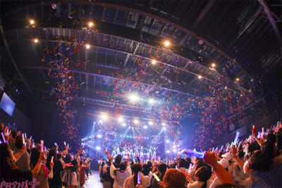 本編最後のMCを担当するのは、1期生の4人。歌い終わりにも関わらず疲れを引きずっていないみやびに成長を感じつつ、安定感のあるトークで進行。そして、この日はみやびのデビュー5周年の日でもある。同期が順番に祝辞と感謝を述べ、ライブは終盤へ。