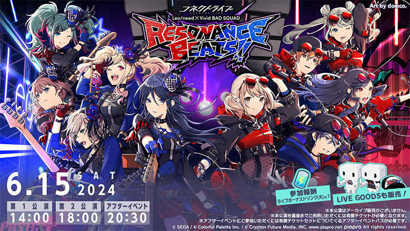 セガとサイバーエージェントグループのColorful Paletteとの協業による、iOS/Android向けリズム&アドベンチャーゲーム『プロジェクトセカイ カラフルステージ! feat. 初音ミク(プロセカ)』にて、本日6月15日に「コネクトライブ Leo/need × Vivid BAD SQUAD RESONANCE BEATS!!」が開催。14:00から行われた第1公演のレポートをお届けします。