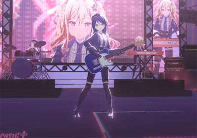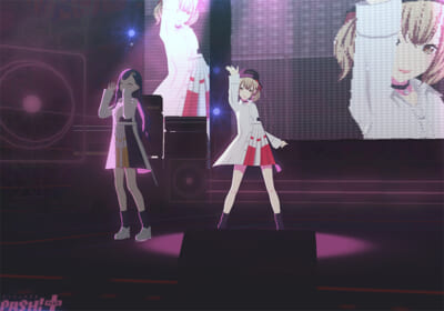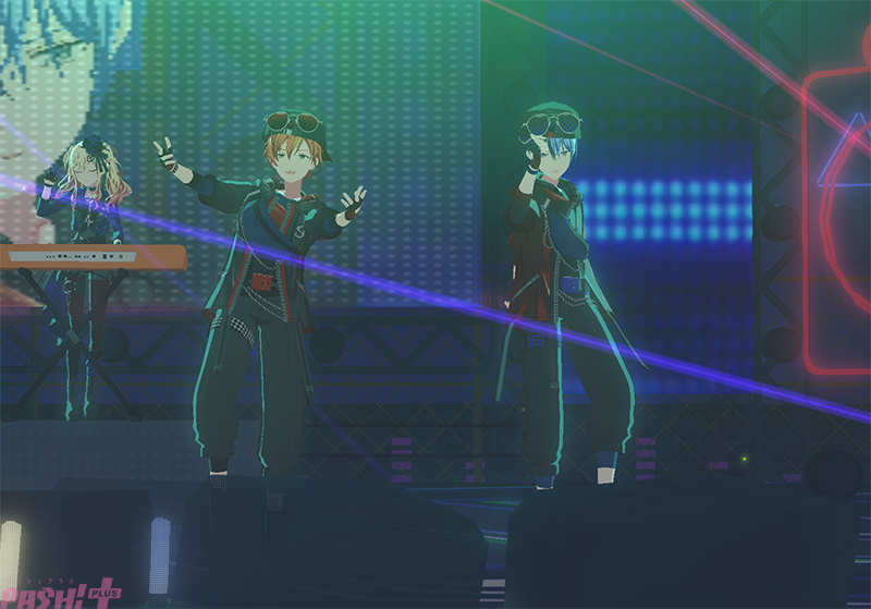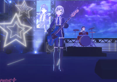 ビビバスのメンバーがライブ会場でギターの音を感じる中、出番は再びレオニにバトンタッチ。流れ星が見える演出の中、MEIKOを加えたメンバーで『流星のパルス』を披露。夜空を感じるリリックと曲調もあいまって、ハイテンポながらロマンチックな雰囲気も感じさせます。