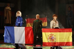 今回もたくさんの曲が登場します。オープニング曲は熱い歌詞とメロディーで、会場を一気に物語の世界へ連れていってくれました。そのあとに続くスペインの自己紹介の曲はフラメンコ、日本のソロ曲は演歌など、各国特有の音楽が取り入れられているので、この公演でさまざまな国の音楽を楽しむことができます。また、キャスト陣とアンサンブルがともに歌う場面では、その声量に圧倒されました。