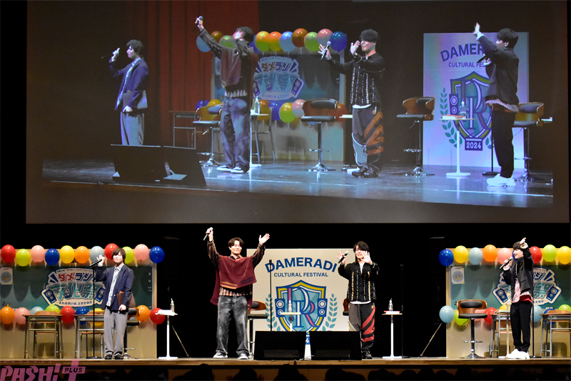 毎年行われている『ダメラジ』イベントですが、今年は文化祭を題材にした演目で開催! ゲストに駒田航さん、神尾晋一郎さんが出演したほか、会場ではフォトスポットの展示や物販も実施されました。