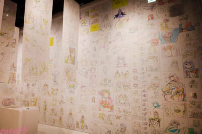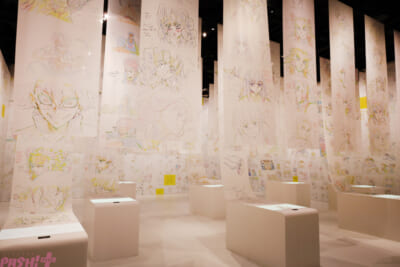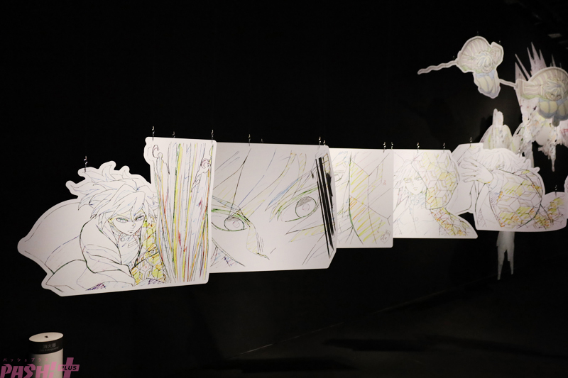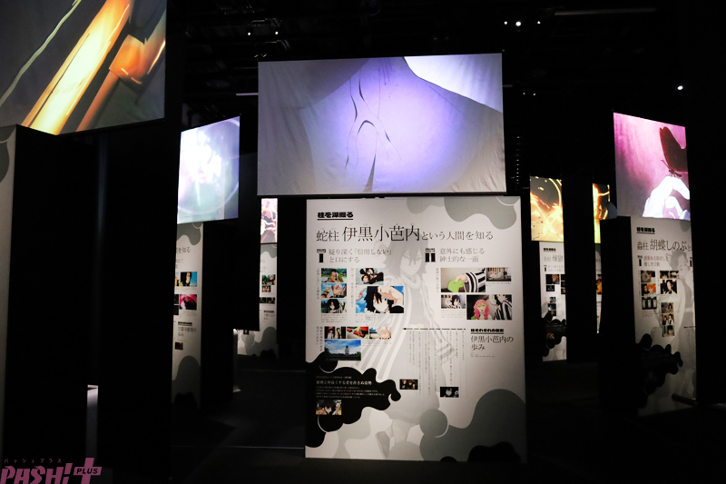 「柱ー表情」には1000枚以上の原画を展示! 壁まで原画で埋め尽くされた展示エリアでは、原画での柱たちの表情を通して、その感情を視覚から受け取ることができます。