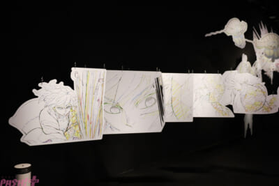 「柱ー躍動」では、柱たちの冴えわたる技の一端を、連続するアクション原画によって再現! 縦横無尽に躍動する柱たちが広い空間を埋め尽す空間は圧巻の一言です。