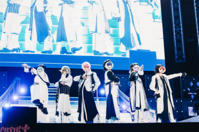 アンコールではメンバーが白パーカーに着替え、本編よりも少しリラックスした空気のパフォーマンス。サプライズでケーキが登場しみんなでりうらの誕生日を祝ったほか、曲中も手をつないで回ったり、肩を組みながら花道を歩いたりと、思い思いにこの瞬間を楽しんでいた。「ずっと一緒にいような」という初兎のセリフや、「Irregular Story」「君のために生まれてきた」の曲調も相まって、クライマックスへの熱量が高まっていく。