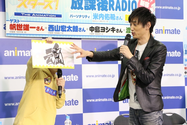 そしてイベント冒頭では、2017年よりアニメイトチャンネルで配信されるラジオ番組の正式タイトルが『あんさんぶるスターズ!THE ANIMATIONに~ちゃん☆忍の放課後RADIO』に決定したことを報告。放送委員の仁兎なずなと仙石 忍の名前をあしらったラジオタイトルとなりました。