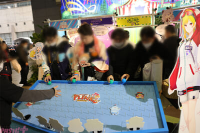 格闘ゲーム風のアートが施された「ホロスターズ・バトルストリート」では、ホロスターズのメンバーが大型モニターでゲームや、カラオケバトルにチャレンジ。熱い戦いを繰り広げました。