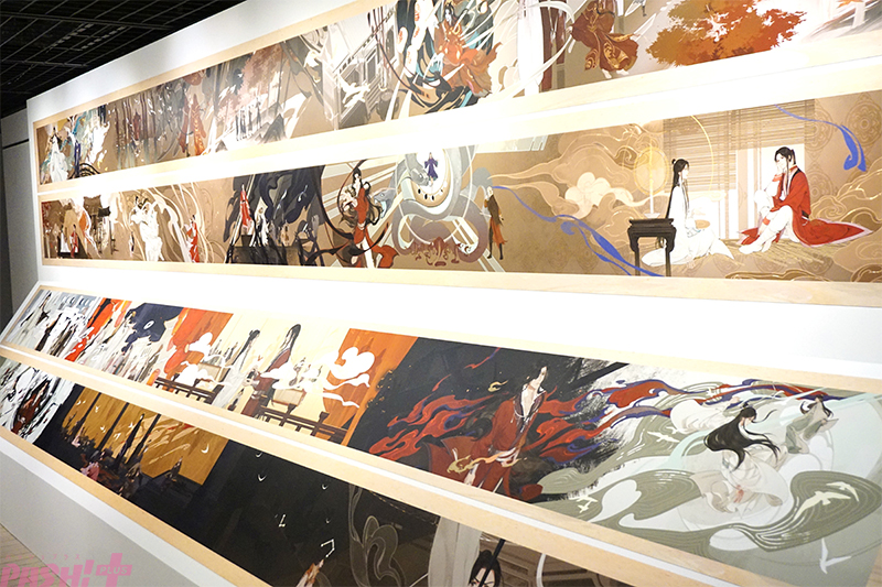 特別映像展示エリアを抜けると、壮大な絵巻の展示へ。謝憐と三郎のほか、四大害などさまざまなキャラクターたちがいききと描かれている絵巻は、思わず見入ってしまうこと間違いなしです。