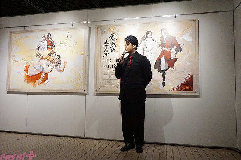 日本で展示イベントが開催されるということで、日本限定のキービジュアルなど、この会場で初めて見られるものもあります。そして日本語吹き替え版として初めてお届けするショートムービーも含めて、設定資料、そして原画の数々、絵巻物など、このスペースを余すことなく楽しんでいただける催しになっております。ぜひともこの『天官賜福』好きな方や、「どうしようかな」と悩んでいる方は1度来てみてください。きっと満足いただけると思いますので、是非ともこの展示イベントにご来場いただけますと幸いです。