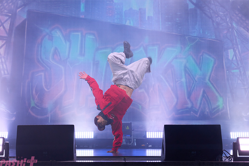 さらに、パリ五輪でも注目を集めたブレイクダンサー・Shigekixも登場し、津軽三味線の力強い演奏と共に圧巻のダンスパフォーマンスを行いました。日本の伝統的な弦楽器である三味線楽曲とブレイクダンスが融合したダイナミックな演出に会場から大きな歓声が上がり、観客のボルテージは最高潮に達します。