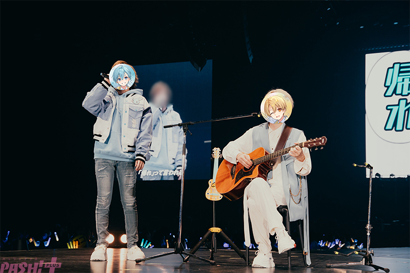 そう挨拶して、「宇宙☆最強の推し」へ。親交のあるYouTuber兼アーティストである☆イニ☆(スカイピース)とのコラボ曲で、1月3日の公演ではコラボ歌唱が実現したこのナンバーでは、ころんのキュートなダンスに歓声が上がる。一転、シルエットをいかした映像演出も映えた「レイジークレイジー」では歌もダンスもかっこいいに振り切って、ころんと親交のある宮川大聖が作詞作曲し、1月3日の公演ではころんと宮川によるコラボ歌唱が実現した「HORIZON」では俯瞰した地球や宇宙の星々など壮大な映像をバックにころんが美声を響かせて。すとぷりというグループにも感じることだが、ころんの表現の豊かさにも本当に驚かされる。