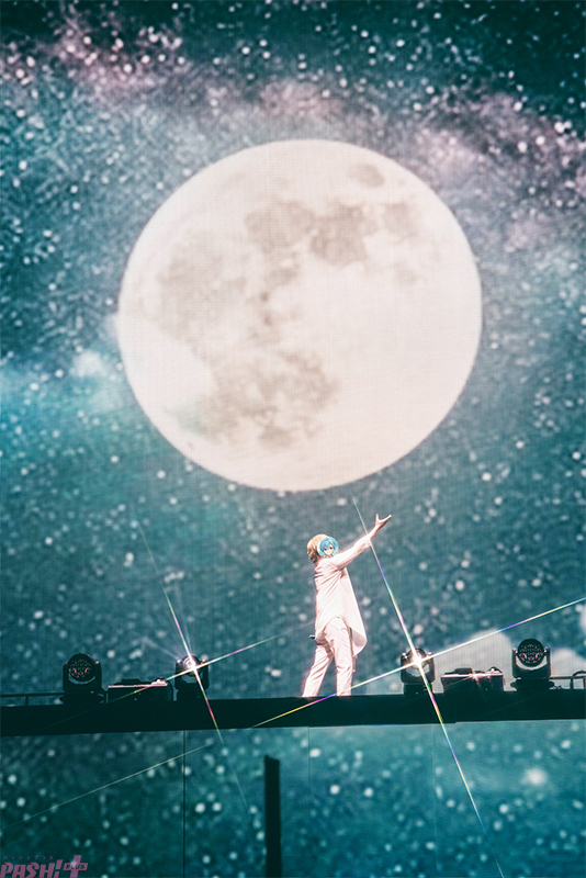 その大ピンチに、「このまま地球に隕石が落ちたらライブできなくなっちゃうよ! じゃあ……俺が地球を救っちゃいますか!」とステージ上段に颯爽と現れたのは、黒王子衣装に身を包んだころんだ。なかなか自分に焦点を合わせないピンスポットライトにツッコみをいれつつ、バシっと照らされた瞬間に「さいたまスーパーアリーナよろしく!」と挨拶して、1stフルアルバム『アスター』に収録の表題曲で自身が作詞を担当した「アスター」へ。