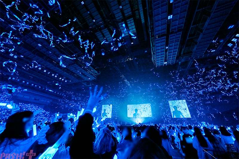 拳を高く突き上げながら歌い、サイコキネシスでダンサーたちによるヴィラン軍団に立ち向かうパフォーマンスで魅せ、ラストポーズも見事にきめるころんは、まさにヒーローだ。そして、リスナーがころんのイメージカラーである水色を灯して全力で振る数多のペンライト、その光は歌詞の<青い花>のごとく美しい。