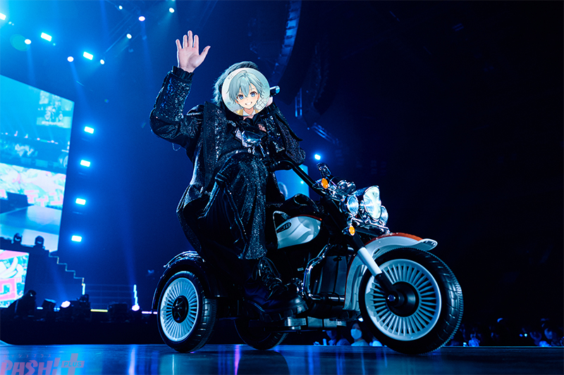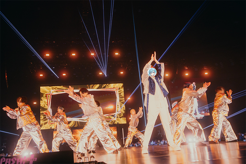 歌だけではなくダンスにもさらに磨きがかかっていることが如実にわかるキャッチーなダンスチューン「404」からの「感情リセマランド」では、ダンサーたちにかつがれたり、<お姫様>=リスナーに向け紳士的なボウ&スクレイプポーズをしたり、ステージ中央から伸びる花道をミニバイクに乗って進んだり。「恋の引力で」では客席に向け笑顔で手を振ったり指ハートを贈ったりしながら甘い歌声でリスナーの心をがっちり掴むころん。遊び心と挑戦心を武器に楽しいを追求する彼の姿は、さいたまスーパーアリーナという大舞台に相応しい。