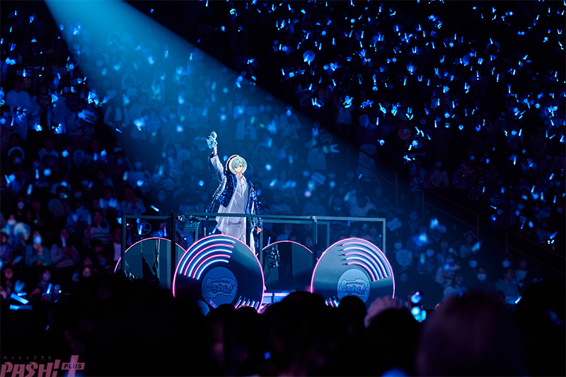 そのままなだれ込んだすとぷりの「パンピじゃないのよッ!!」から連なった「きゅんですきゅんです」、「タイフーン・ビート」、すとぷりの「白馬のオールナイト」では、レコードをかたどった電飾きらめくフロートに乗り込んでアリーナ客席通路を進むころんが、たっぷりファンサをしたり、タオルをぐるんぐるん振り回したり、リスナーの全力コールを浴びたり。さらにたたみかけた「唱」では、エキゾチックビートを完璧に乗りこなす歌とダンスで覇者の風格を漂わせたり。ころんという沼は、とんでもなく深い。