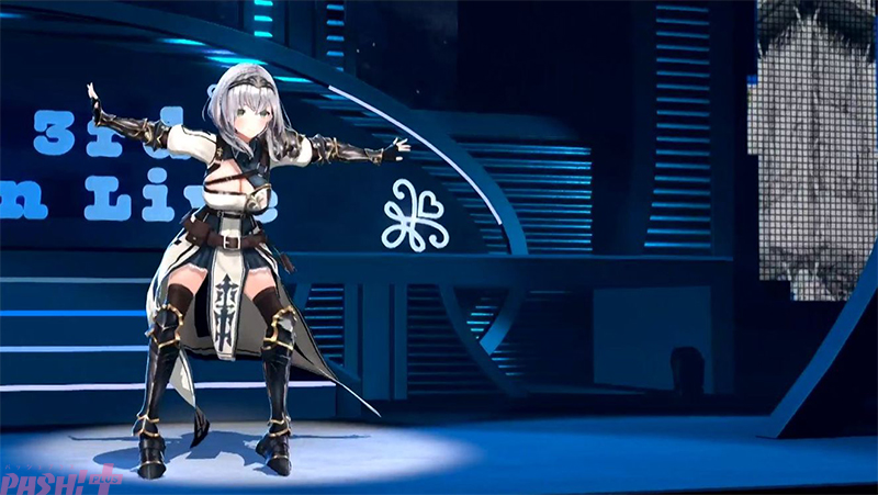 白銀ノエルがカバーしたのは、宝鐘マリンの「パイパイ仮面でどうかしらん?」。昭和・平成アニメテイストをイメージさせるこの楽曲の、少しゆったりめのノリの良さが、白銀ノエルの声質にあまりにもぴったり。宝鐘マリンのキャラクター性がとても強い楽曲を、完全にほんわか白銀ノエル色で飲み込んだ。このあとのMCでは白銀ノエルが「本物のパイパイ仮面」と自称し、宝鐘マリンが悔しがる様子も見られた。