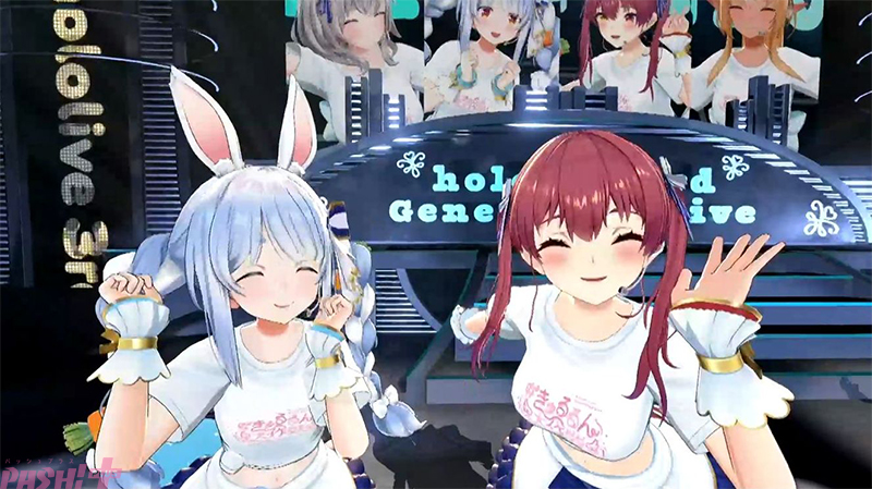 曲の後に不知火フレアが登場し、MCで質問をする。「今年はぺこフレはありますか?」。これに対して「あるよねー!?」と会場に叫ぶ兎田ぺこら。大喜びをする会場の観客。それを証明するかのようにふたりが歌ったのが6曲目、小倉唯のカバー曲「Baby Sweet Berry Love」だ。振り付けは完全にシンクロしており、声質のバランスもぴったり! ふたりの歌い方は普段以上に「かわいい」を意識したものになっているのも聞き所だ。今年一発目の「ぺこフレ」だそうなので、今後のさらなる「ぺこフレ」供給に期待が寄せられる。