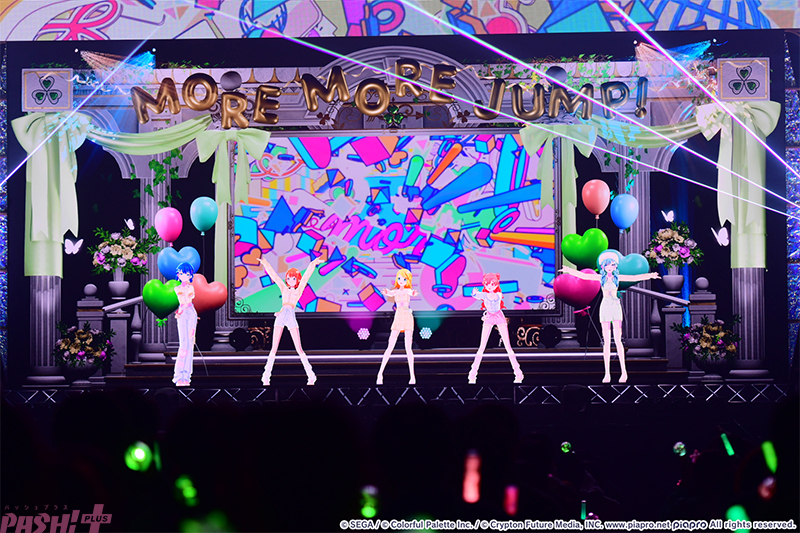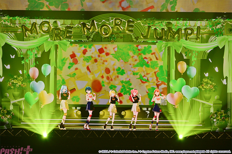 直前のビビバスとはまた異なる盛り上がりを見せるのは『オーバーライド』から出番がスタートとなったMORE MORE JUMP!(通称:モモジャン/花里みのり、桐谷遥、桃井愛莉、日野森雫)と鏡音リン。「もっと声聞かせて!」という殺し文句にファンも大興奮です。