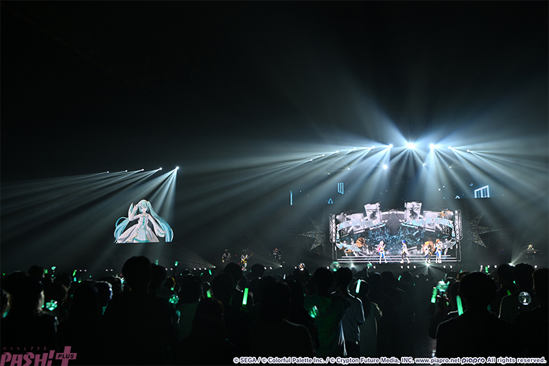再び登場したバーチャル・シンガーたちは、ここまでに様々なパフォーマンスを見せた彼らの成長に感慨深げ。そして、「みんなの思いをつなぐ歌」として『Connecting』を歌唱すると会場からも歓声が上がります。