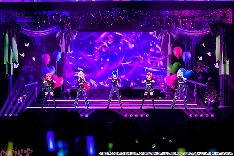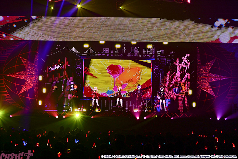 MCパートではこはね&彰人、杏&冬弥によるリリックバトルも展開するなど、クールな印象の中にアツい魂を感じさせるビビバスメンバー。ミクとMEIKOがチェンジして歌う『春嵐』では、クラブミュージックの趣も感じるオシャレな楽曲を高い歌唱力で歌いこなすと、ムーディーな雰囲気の会場で観客もその歌声に聴き入ります。